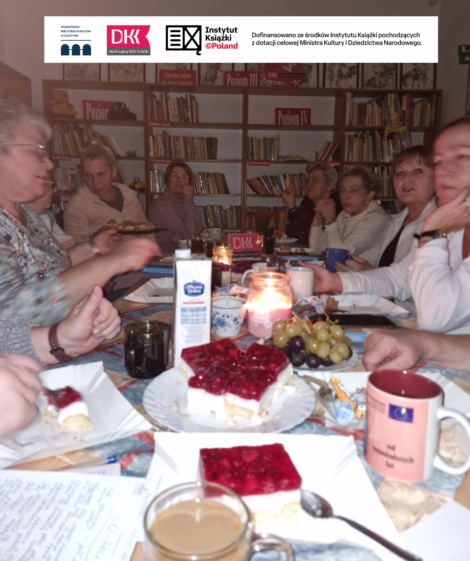 Podczas kolejnego spotkania Dyskusyjnego Klubu Książki w Filii w Sterławkach Wielkich, które odbyło się 26 listopada 2025 r. uczestnicy rozmawiali o książce „Pięćdziesiątka” Ingi Iwasiów. Lektura wywołała żywą dyskusję. Klubowicze zwracali uwagę na szczerość i intymność narracji oraz sposób, w jaki autorka podejmuje temat kobiecości, dojrzewania i mierzenia się z przemijaniem. W pewnym momencie niespodziewanie zgasło światło, jednak atmosfera spotkania na tym nie ucierpiała. Wręcz przeciwnie, rozmowę kontynuowano przy blasku świec, co dodało dyskusji wyjątkowego, kameralnego charakteru.