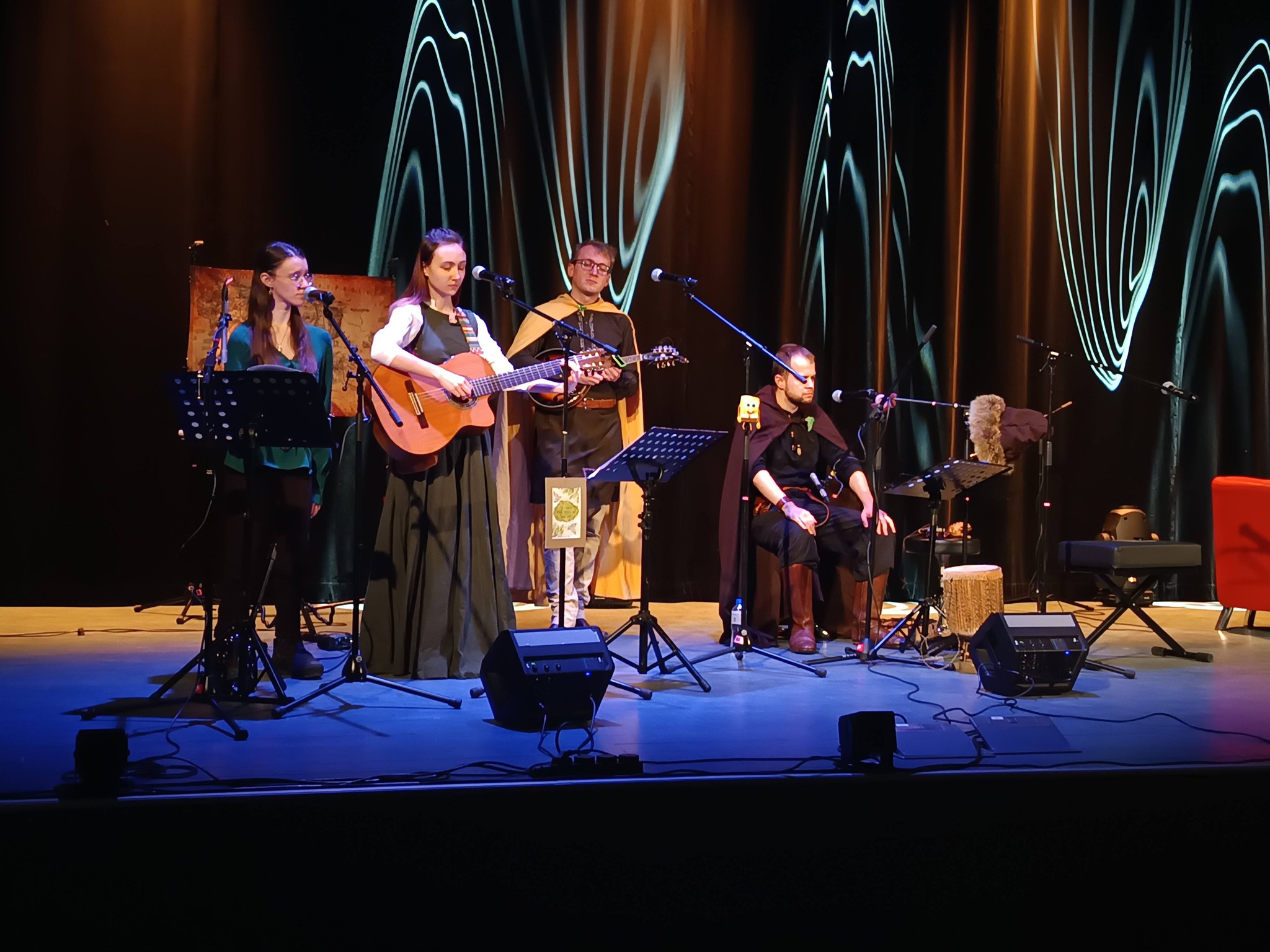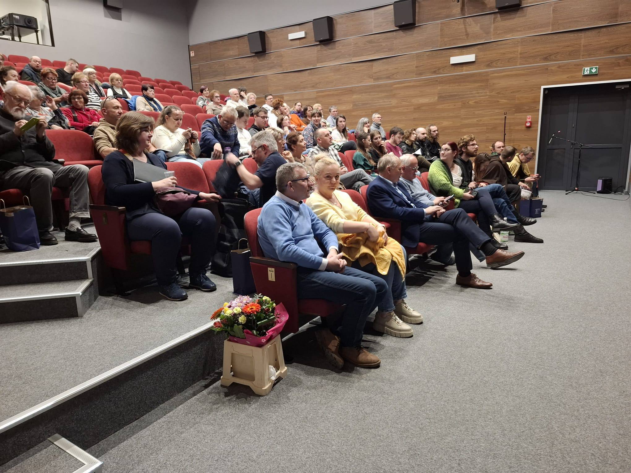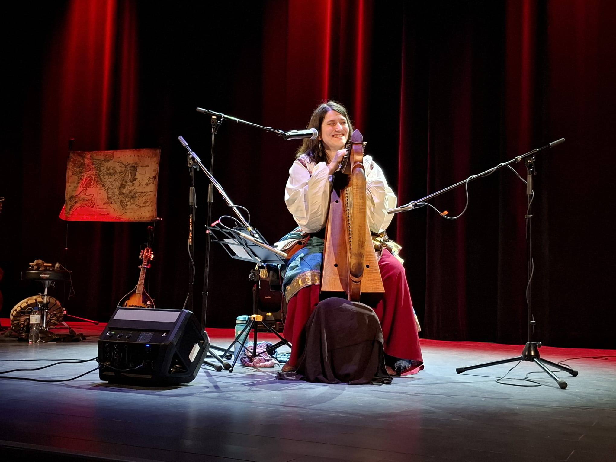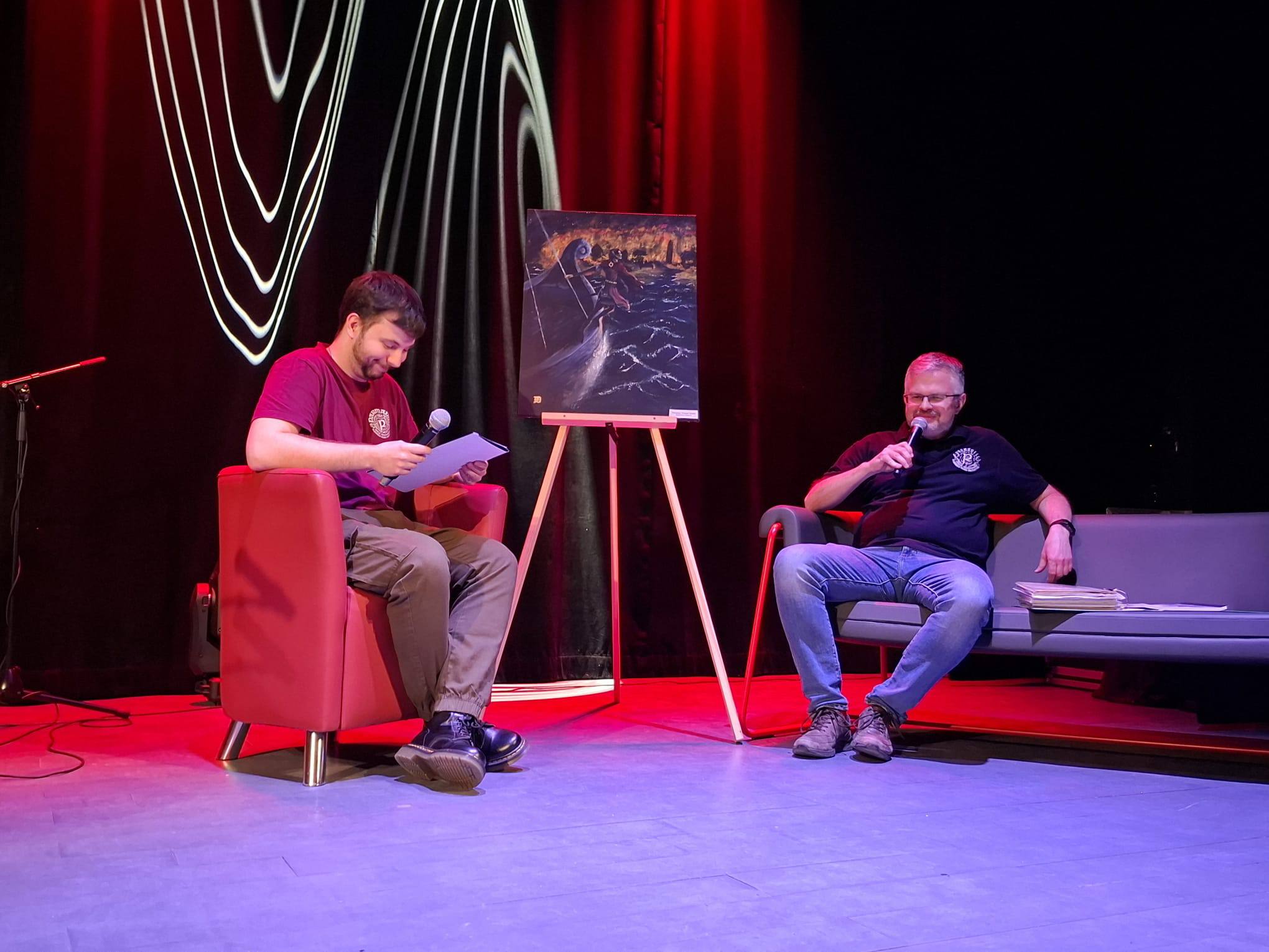 Już od kilku lat Dzień Czytania Tolkiena obchodzimy w ryńskiej bibliotece przez dwa dni. Tak było też w tym roku – 20 marca 2026 r. w Rynie, a kolejnego dnia w Tołkinach. Pierwszego dnia zebranych gości powitał Zespół Za Progiem – Śpiewy Śródziemia. Następnie odbyła się uroczysta premiera nowego fanzinu Cuivienen, którą poprowadziła Katarzyna Lubowiecka-Motyka razem z Kacprem Pochopień z Sekcja Tolkienowska ŚKF – Parmadili. Na pierwszym panelu zasiedli artyści i autorzy grafik do czasopisma: Karolina Stopa, podzieliła się swoim zdaniem na temat polskich wydań książek Tolkiena i inspiracjami, Maria Niewalda opowiedziała o ilustracjach oraz swoich inspiracjach i autorytetach. Na koniec głos zabrał Sebastian Dębski na temat swojego obrazu, który znalazł się na okładce nowego fanzinu. Po kolejnej przerwie z zespołem Za Progiem, nadszedł czas na rozmowę z Tadeuszem Andrzejem Olszańskim, znanym w fandonie jako TAO. Rozmowa dotyczyła tematów bliskich zawodowo rozmówcy, czyli kwestii politycznych. Jednoznacznie w rozmowie obalone zostały pewne popularne wśród fanów teorie, ale także wyjaśniliśmy kwestie związane z recepcją Tolkiena współcześnie. Następnie Kacper Pochopień poprowadził niesamowicie ciekawą rozmowę z Tomaszem Gubała, który opowiedział o swoich początkach w fandomie w latach 90, swoim dołączeniu do ŚKFu, pierwszych czasopismach, rzeczywistości sprzed ekranizacji, przyjaźni z Ryszardem Derdzińskim i wyprawach Tolkienowskich. Na koniec wystąpiła magiczna i czarująca Barbara Karlik. Dźwięki jej harfy zauroczyły uczestników spotkania i przeniosły wprost do świata fantasy.