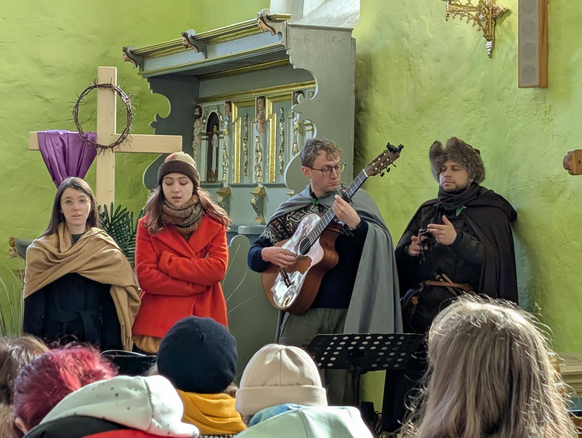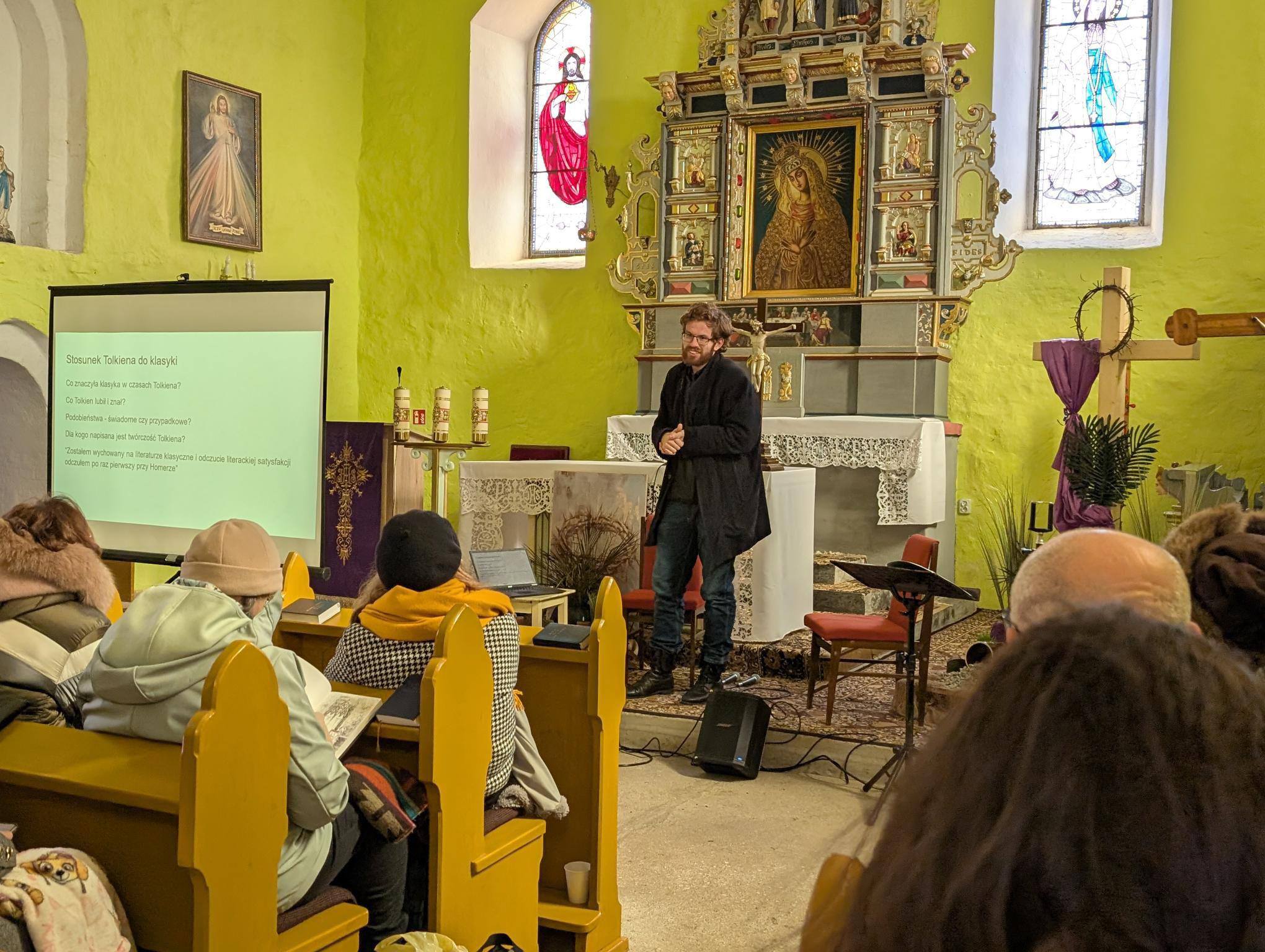 Drugiego dnia tradycyjnie przenosiny się do Tołkin. Mimo niesprzyjającej aury zimna dyskusje były gorące. A Zespół Za Progiem ukoił nas muzyką. Zaczęliśmy od panelu z Michałem Leśniewskim, czyli znanym w fandomie ML na temat źródeł politeizmu w świecie Tolkiena. Następnie Marek Gumkowski opowiedział na temat jego doświadczeń w związku z jego bogatym dorobkiem redaktorskim i funkcjonowaniem fandomu. Na koniec Dominik Wojciechowski z Tolkien World opowiedział o inspiracjach antycznych jakie dostrzega w wybranych utworach Tolkiena. Po tym przenieśliśmy się do świetlicy wiejskiej w Tołkinach, gdzie przy cieście i kawie kontynuowaliśmy dyskusje i śpiewy.